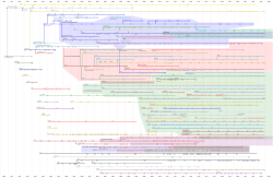 Hi Jmabel, Over the years I have collected many EasyTimeline timelines, and none of them comes close to the example. Writing one from scratch is in EasyTimeline seems therefore not an option, knowing my limited skills with it. The timeline templates do not seem to provide the options for indicating forks/mergers/splits.